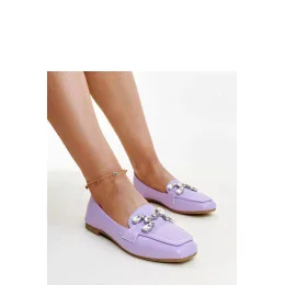 Fialové mokasíny Mali s cirkonovou sponou jsou velmi elegantní volbou pro každou ženu. Jejich jedinečný design s cirkonovou sponou jim dodává nezaměnitelný lesk a eleganci. Mokasíny mají jednoduchý, čtvercový špičatý konec, který jim dodává modernost. Díky modelu slip-on jsou snadné na obouvání a svlékání. Tyto fialové mokasíny se určitě stanou nezbytnou součástí vaší šatníku! Díky nim vytvoříte stylizaci, která přitáhne pozornost a podtrhne váš individuální styl. Vsadte na pohodlí a módní vzhled - vyberte si mokasíny Mali s cirkonovou sponou už dnes! Vnější materiál: Ekologická kůže Vyztužení: žádné Materiál podrážky: Pryž Barva podrážky: Hnědá Zapínání: Slip-on Kolekce: Jaro/Léto