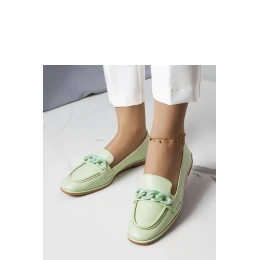 Zelené mokasíny Bobbie zdobené reťazou sú ideálnou voľbou pre ženy, ktoré oceňujú eleganciu a pohodlie. Tieto štýlové mokasíny sú vyrobené z kvalitnej ekologickej kože, čo zaručuje ich odolnosť a estetický vzhľad. Jednoduchý strih zvršku bol oživený hrubou reťazou, ktorá celku dodáva eleganciu a štýl. Vďaka univerzálnej farbe sa tieto mokasíny hodia k mnohým štýlom oblečenia a zapínanie na klin zaručuje pohodlné nosenie. Skvelé na nadchádzajúce leto!