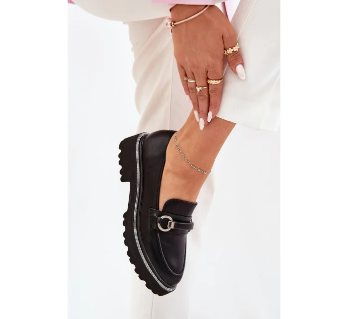 Elegantné mokasíny vyrobené z ekologickej kože. Zdobený predný remienok dodáva výnimočný charakter a zaoblená špička zaručuje pohodlie počas celého dňa. Podrážka je zdobená kamienkami, ktoré dodávajú lesk. Tieto mokasíny sú ideálne na každodenné nosenie a skvele sa hodia k rôznym štýlom. materiál koženka