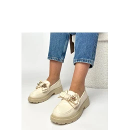 Mokasíny s mašľou a kovovou ozdobou sú štýlovou obuvou, ktorá spája eleganciu s každodenným pohodlím. Sú vyrobené z kvalitnej ekokože, vyzerajú esteticky a pohodlne sa nosia. Okrúhla špička zaručuje pohodlie a voľnosť pre prsty. Model slip-on, ideálny na rýchle a pohodlné každodenné nosenie. Stielka z ekokože zvyšuje pohodlie pri nosení. Jemná mašľa spolu s kovovou ozdobou dodáva mokasínom ženský a elegantný charakter. 5 cm podpätok jemne nadvihuje postavu pri zachovaní stability a pohodlia.