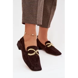 Tieto dámske mokasíny, vyrobené z prírodného semišu, sú štýlovou ponukou pre ženy, ktoré ocenia klasiku v modernom dizajne. Mäkký zvršok zaručuje pohodlie pri nosení a estetický vzhľad, ideálny na každodenné a elegantné outfity. Mäkký, plochý podpätok modelu podporuje pohodlie pri chôdzi, zatiaľ čo hranaté špicaté zakončenie dodáva módny charakter. Ozdobný detail podčiarkuje elegantný vzhľad a je nenápadným akcentom, ktorý priťahuje pozornosť. Ide o nadčasové mokasíny, ktoré sú ideálne na pracovné outfity a špeciálne príležitosti.