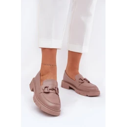 Mokasyny Damskie Eko Skórzane Z Ozdobnym Detalem Khaki Seftass