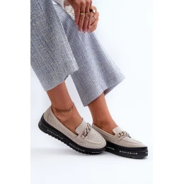 Mokasyny Damskie Skórzane Na Platformie Z Łańcuchem S.Barski LR618 Beżowe