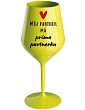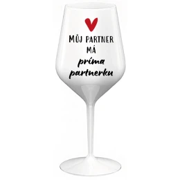 MŮJ PARTNER MÁ PRIMA PARTNERKU - bílá nerozbitná sklenice na víno 470 ml