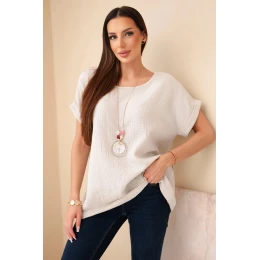Mušelínová halenka s náhrdelníkem je ideální volbou pro ženy, které ocení jemný styl a výjimečné pohodlí při nošení. Vyrobena z lehkého, prodyšného mušelínu, poskytuje jemnost a volnost pohybu po celý den. Její volný, elegantní střih zajišťuje dokonalé přizpůsobení postavě a podtrhuje její přirozenou krásu. Halenku doplňuje ozdobný náhrdelník, který jí dodává charakter a eliminuje potřebu dalších doplňků. Tento model se skvěle hodí jak na každodenní nošení, tak i na formálnější příležitosti. Můžete ji kombinovat s džíny, elegantními kalhotami nebo sukní a vytvořit tak perfektní outfit pro každou příležitost. Zvolte mušelínovou halenku s náhrdelníkem a užívejte si nadčasovou eleganci v lehkém, ženském provedení. Velikost je univerzální a vhodná pro ženy nosící velikosti S, M nebo L.