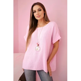 Mušelínová halenka s náhrdelníkem bonbónově růžová