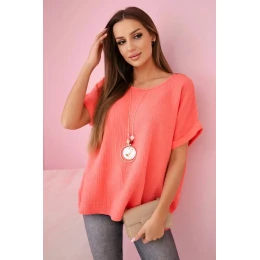 Mušelínová halenka s náhrdelníkem je ideální volbou pro ženy, které ocení jemný styl a výjimečné pohodlí při nošení. Vyrobena z lehkého, prodyšného mušelínu, poskytuje jemnost a volnost pohybu po celý den. Její volný, elegantní střih zajišťuje dokonalé přizpůsobení postavě a podtrhuje její přirozenou krásu. Halenku doplňuje ozdobný náhrdelník, který jí dodává charakter a eliminuje potřebu dalších doplňků. Tento model se skvěle hodí jak na každodenní nošení, tak i na formálnější příležitosti. Můžete ji kombinovat s džíny, elegantními kalhotami nebo sukní a vytvořit tak perfektní outfit pro každou příležitost. Zvolte mušelínovou halenku s náhrdelníkem a užívejte si nadčasovou eleganci v lehkém, ženském provedení. Velikost je univerzální a vhodná pro ženy nosící velikosti S, M nebo L.