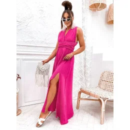 Mušelínové dámské šaty ve fuchsijové barvě se výstřihem model 20137736 - Moon