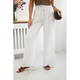 Objevte jedinečné kalhoty vyrobené z jemného, prodyšného mušelínu, které poskytují nevídaný komfort nošení i v nejteplejších dnech. Jejich široká nohavice dodává celému outfitu módní, moderní charakter, opticky prodlužuje postavu a přidává lehkost celkovému stylu. Ideální pro každodenní nošení, do práce i na výjimečné příležitosti – tyto kalhoty se skvěle kombinují s různými topy, od minimalistických triček, přes elegantní halenky až po svetry. Vsaďte na klasický, ale zároveň sofistikovaný design, který vám umožní užívat si pohodlí i originální styl. Velikost je univerzální a odpovídá ženám nosícím velikosti S, M nebo L.