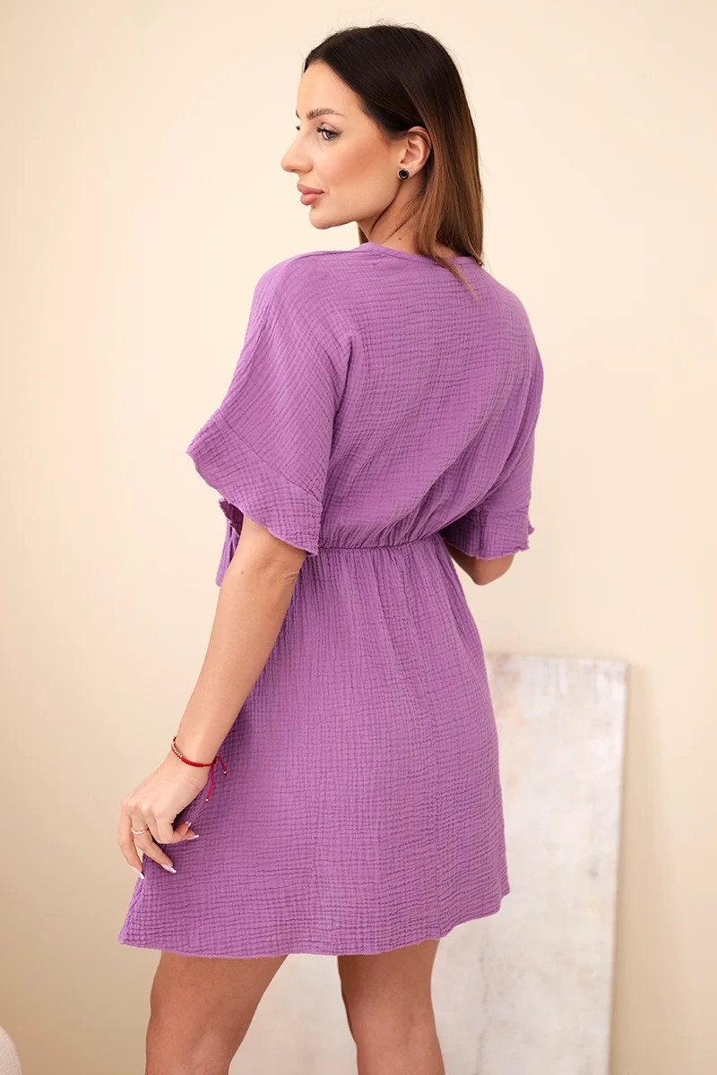Mušelínové šaty s pasem fialka