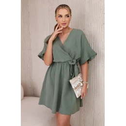 Mušelínové šaty s khaki pásom