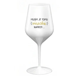 MUSÍM JÍT TOMU VÍNEČKU NAPROTI... - bílá nerozbitná sklenice na víno 470 ml