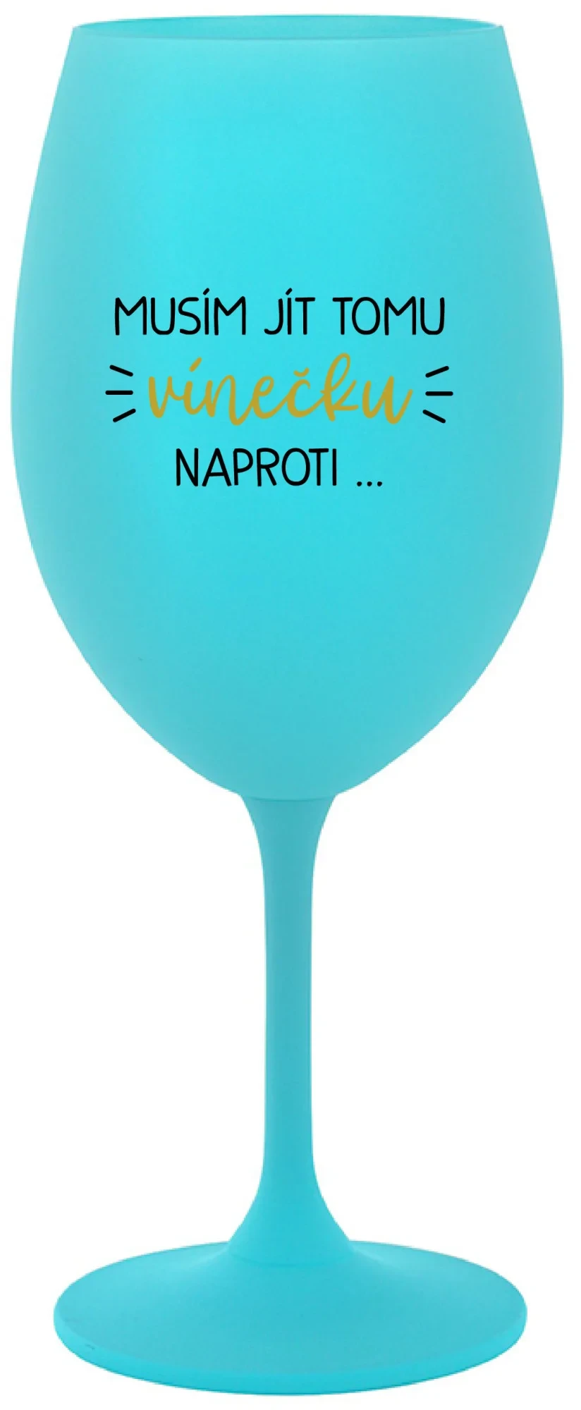 MUSÍM JÍT TOMU VÍNEČKU NAPROTI... - tyrkysová sklenice na víno 350 ml