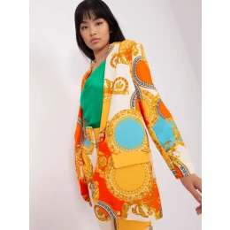 Oranžová a tmavožltá bunda .