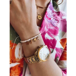 Tento okouzlující korálkový náramek se zavěšenými písmeny je nejen krásným doplňkem vašeho šatníku, ale také jedinečným způsobem, jak vyjádřit lásku k nejdůležitější osobě ve vašem životě - vaší mamince. Náramek je vyroben z jemně leštěných korálků, které na světle září, a vyzařuje eleganci a jemnost. To však není vše - zavěšená písmena, která tvoří slovo "máma", dodávají celému designu osobní a jedinečný nádech.