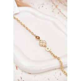 Dámský náramek z chirurgické oceli v zlaté barvě je lehký, ženský akcent vhodný k mnoha stylům. Přívěsek ve tvaru čtyřlístku jí dodává šarm a symbolický charakter. Odolný materiál zajišťuje, že náramek si dlouho zachová svůj lesk. Je to univerzální doplněk, který se skvěle hodí jak na denní nošení, tak při formálnějším příležitostech.