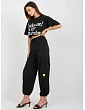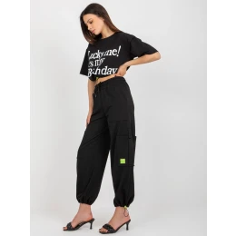 Čierna dvojdielna tepláková súprava s cargo nohavicami.