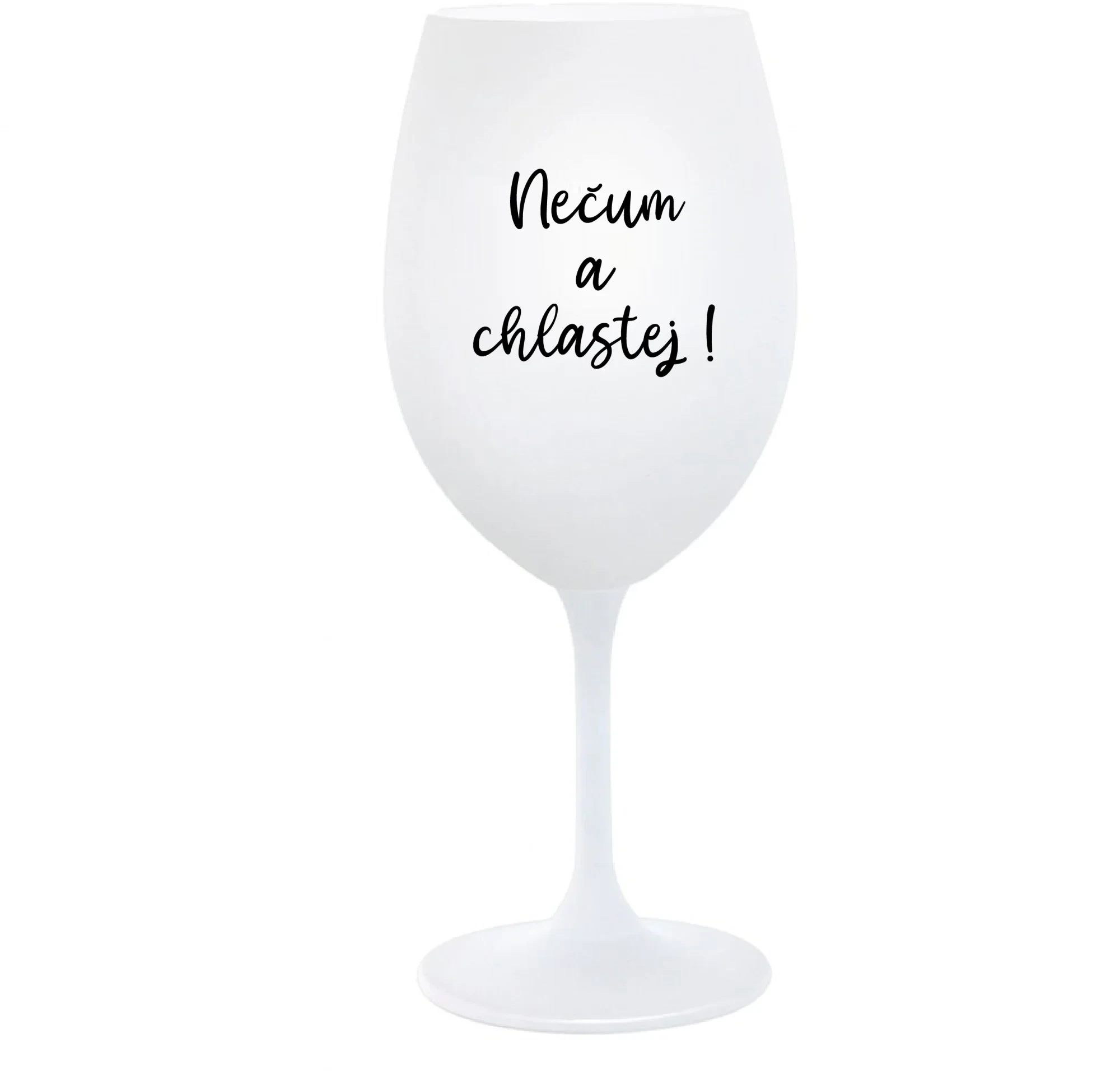NEČUM A CHLASTEJ! - bílá sklenice na víno 350 ml