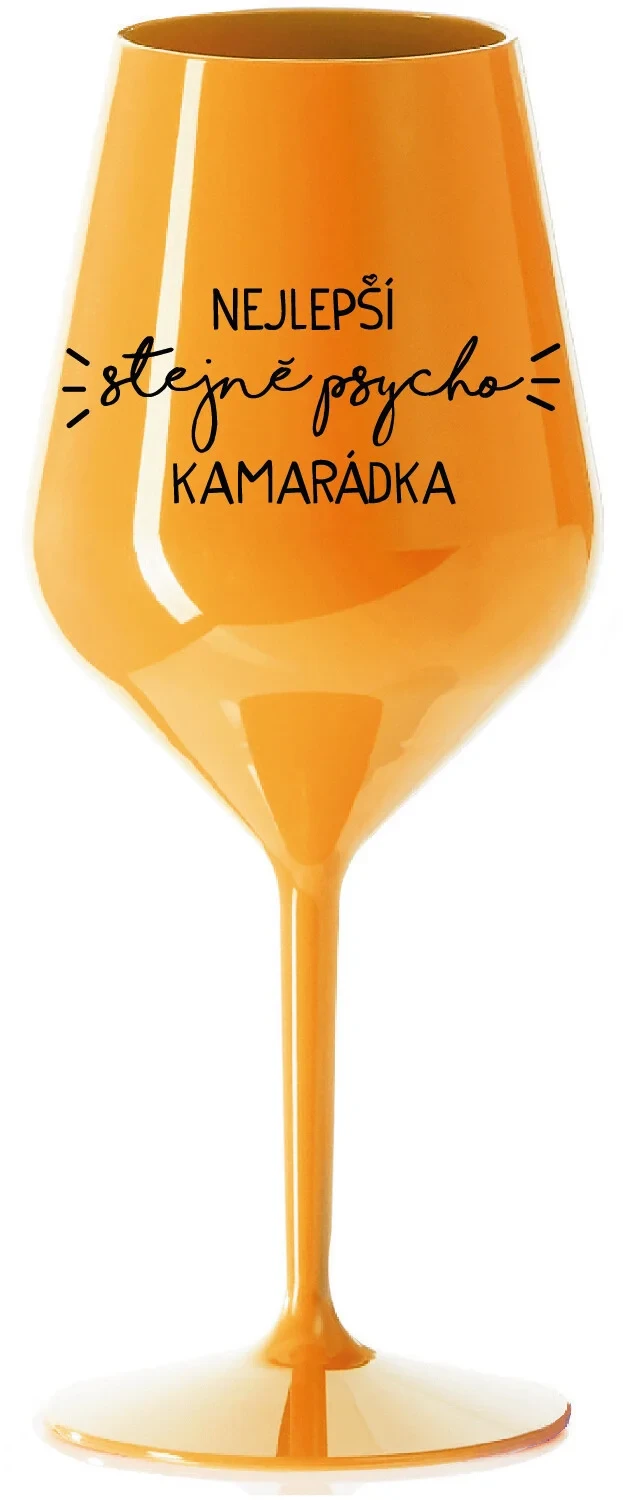 NEJLEPŠÍ STEJNĚ PSYCHO KAMARÁDKA - oranžová nerozbitná sklenice na víno 470 ml