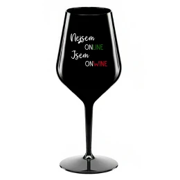 NEJSEM ONLINE JSEM ONWINE - černá nerozbitná sklenice na víno 470 ml
