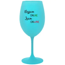 NEJSEM ONLINE JSEM ONWINE - tyrkysová sklenice na víno 350 ml
