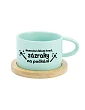 Keramický hrneček „Makronka“ s bambusovým podtáckem – Nemožné dělám hned, zázraky na počkání