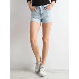 Dámske modré džínsové šortky s vyhrnutými nohavicami .