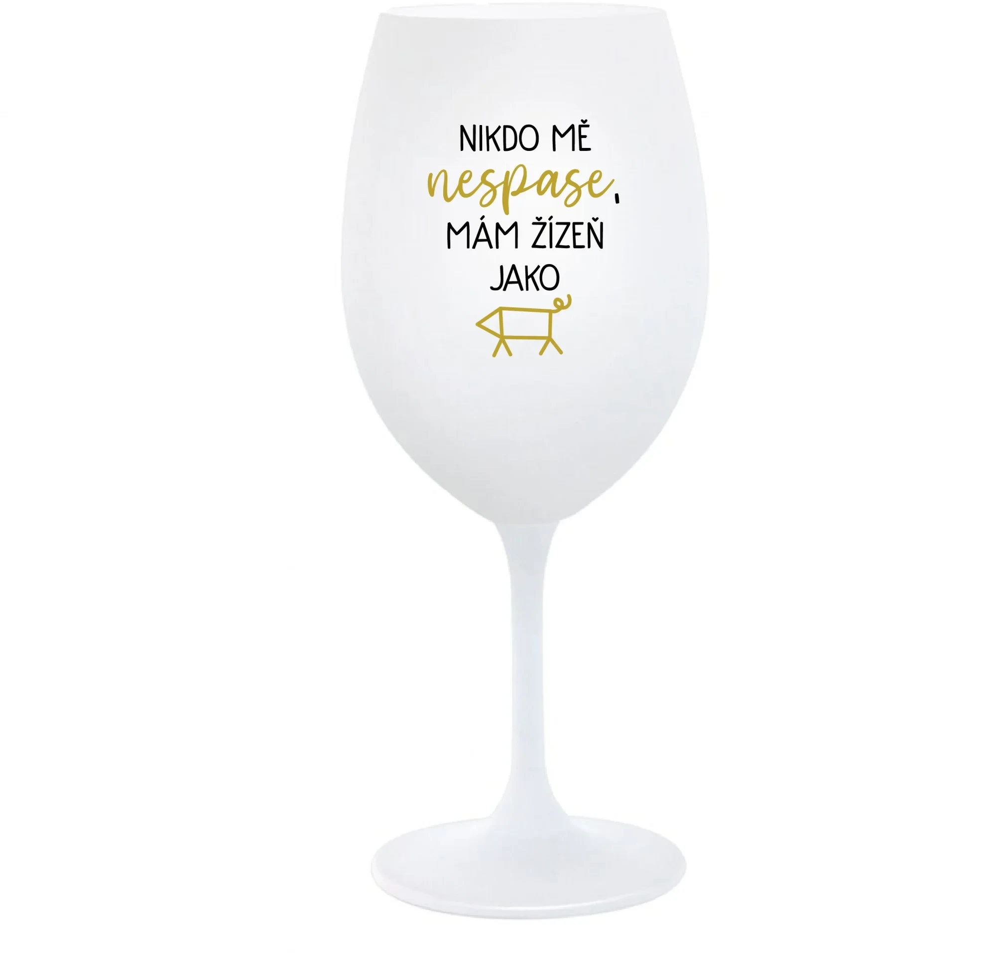 NIKDO MĚ NESPASE, MÁM ŽÍZEŇ JAKO PRASE - bílá sklenice na víno 350 ml