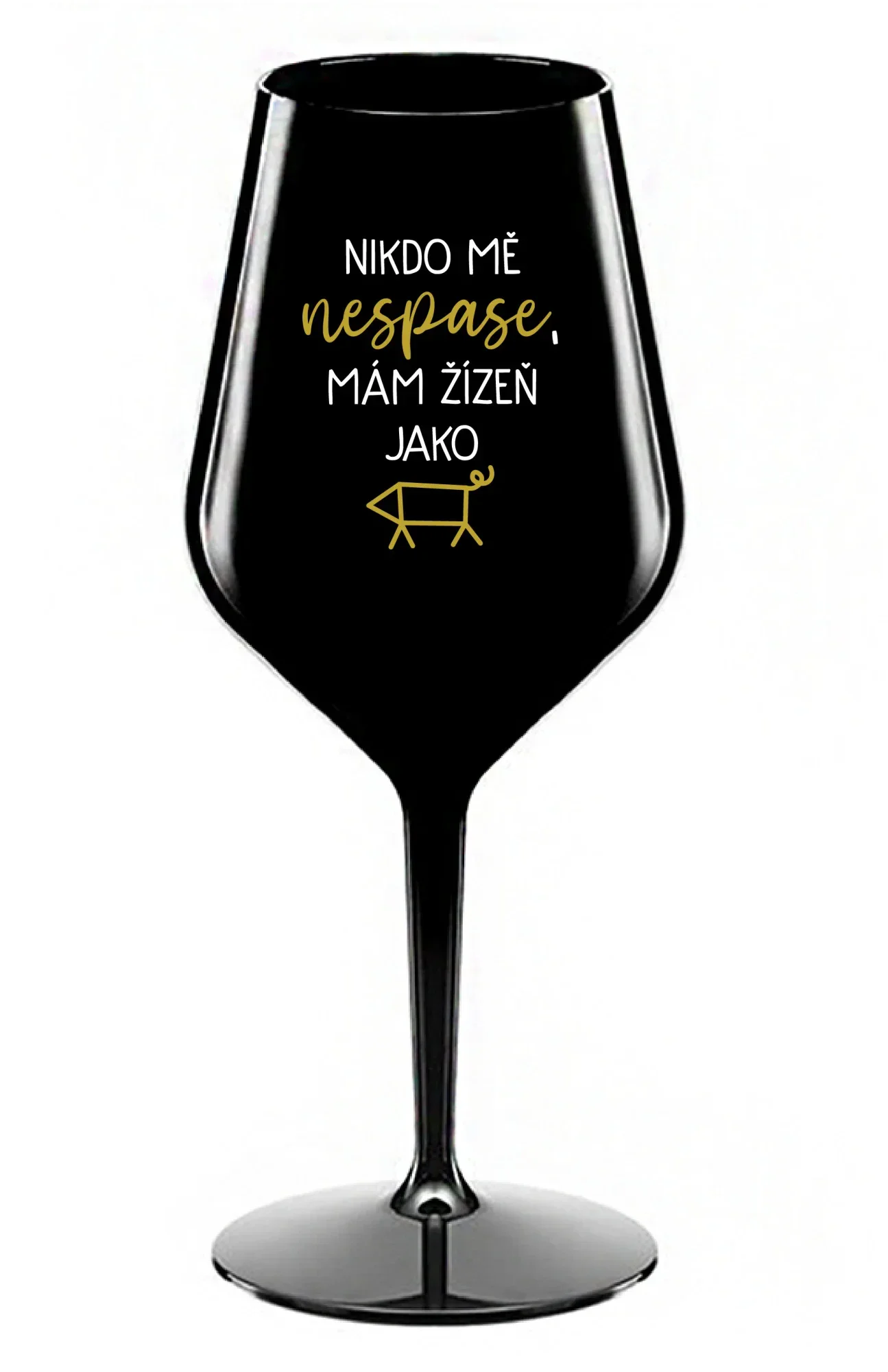 NIKDO MĚ NESPASE, MÁM ŽÍZEŇ JAKO PRASE - černá nerozbitná sklenice na víno 470 ml