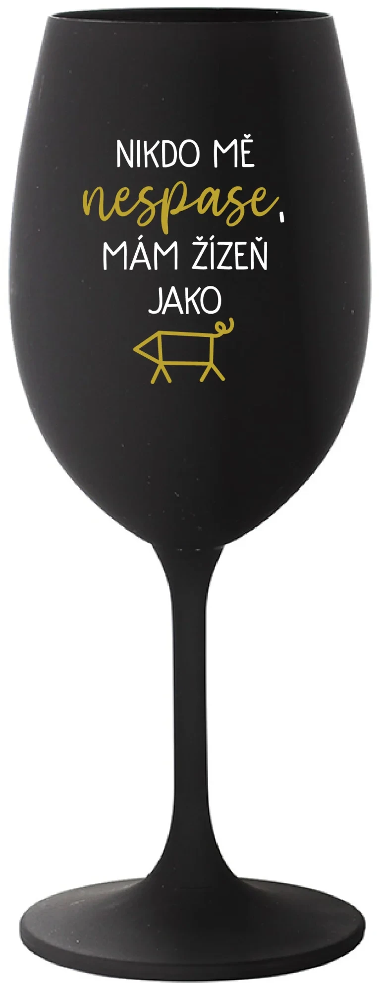 NIKDO MĚ NESPASE, MÁM ŽÍZEŇ JAKO PRASE - černá sklenice na víno 350 ml