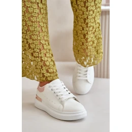 Niskie Trampki Damskie Na Platformie Z Eko Skóry Biało-Różowo Nevelena