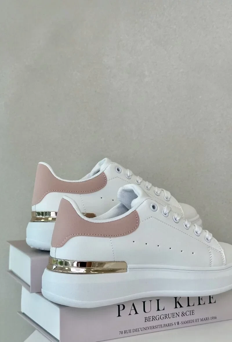 Nízké dámské tenisky na platformě z eko kůže bílo-růžové Nevelena