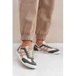 Niskie Tenisówki Trampki Damskie Beżowo-Zielone Eezore