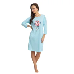 Nočná košeľa 128 plus Luna - tyrkysová farba - z vysoko kvalitnej bavlny - trojštvrťové rukávy - ozdobená potlačou na prednej strane - dĺžka nad kolená