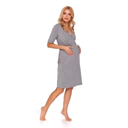 Nočná košeľa 9116 grey Doctornap - šedá farba - vyrobená z veľmi kvalitnej a príjemnej látky - s krátkymi rukávmi - prekrížený dekolt - na bokoch vrecká - ideálny pre tehotné a dojčiace ženy