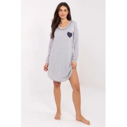 Táto nočná košeľa je vyrobená z prevažne bavlnenej tkaniny, ktorá poskytuje mäkkosť, priedušnosť a pohodlie počas spánku, a má roztomilú potlač srdiečok vo výške hrudníka, ktorá celku dodáva jemný, dievčenský pôvab. Má srdiečkový výstrih, ktorý zvýrazňuje ženskú siluetu, a dlhé rukávy, ideálne na chladnejšie noci. Je to pohodlná a štýlová voľba pre tých, ktorí ocenia klasickú, jemne zdobenú nočnú bielizeň.