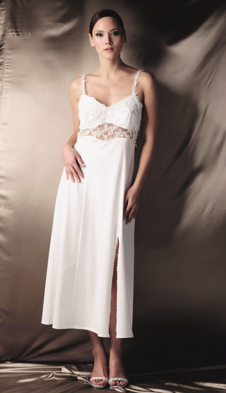 Krásna dlhá košeľa Féraud. Luxusne spracovaný prešívaný top, priehľadná čipka pod prsiami. Košieľka má rozparok zdobený čipkou a špagetové nastaviteľné ramienka.