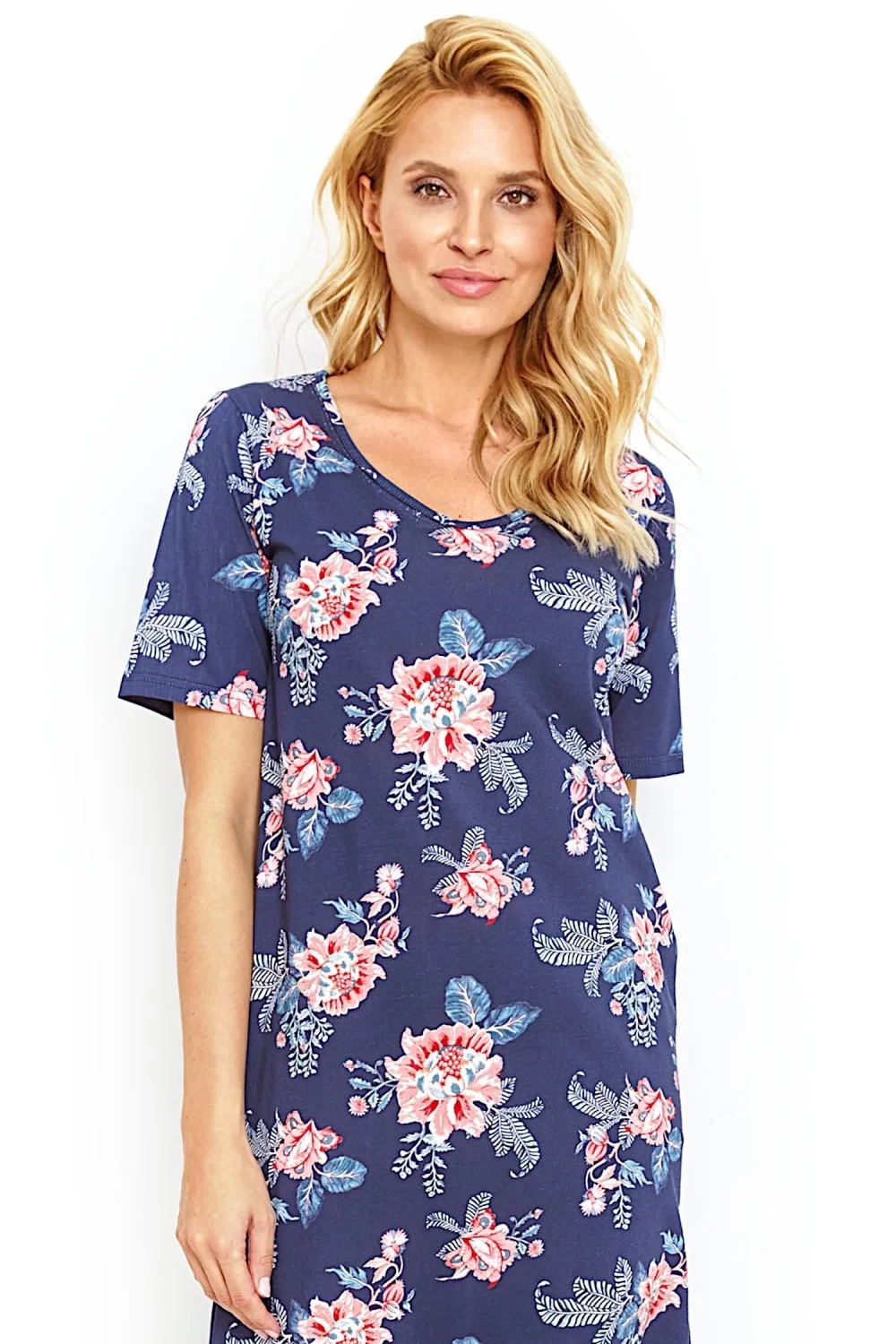 Dámska nočná košeľa 2879 Ellie Taro - vyrobená z kvalitnej bavlny - tmavomodrá farba s potlačou - krátke rukávy - dĺžka nad kolená Zloženie materiálu: 100% bavlna