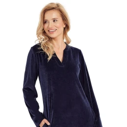 Noční košile 3028 Lauren TARO - tmavě modrá barva - je vyrobená z velmi kvalitní bavlny - velur - s dlouhými rukávy - s kapsami