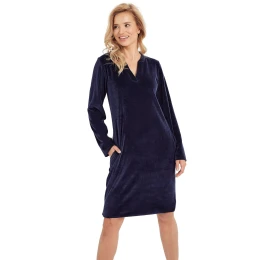 Nočná košeľa 3028 Lauren TARO - tmavomodrá - z kvalitnej bavlny - velúr - dlhé rukávy - s vreckami Zloženie materiálu: 80% bavlna + 20% polyester