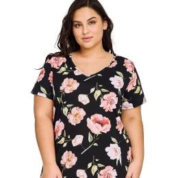 Noční košile 3160 Peony TARO - černá barva - z vysoce kvalitní bavlny - s květinovým vzorem - krátké rukávy