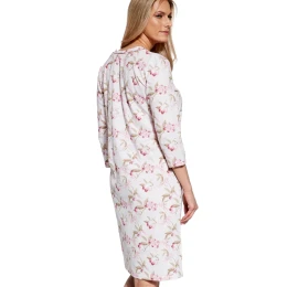 Noční košile 483/361 Adele 2 plus CORNETTE - růžová barva - vyrobeno z kvalitní bavlny - květinový vzor - výstřih do V - tříčtvrteční rukávy - délka nad kolena