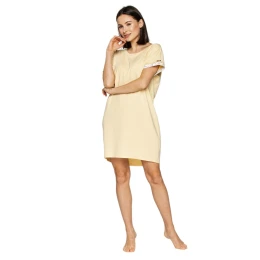 Dámska nočná košeľa 876 CANA - úžasne pohodlná bavlnená košeľa - v príjemnej žltej farbe - s okrúhlym výstrihom a krátkymi rukávmi - dĺžka po kolená