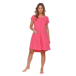Dámske tehotenské tričko 9445 pink Doctornap - ružová farba - vyrobené z kvalitnej bavlny - s krátkymi rukávmi - zapínanie na patentky - s vreckami - ideálne pre tehotné a dojčiace ženy