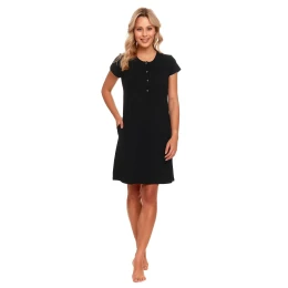 Nočná košeľa 9941 black Doctornap - čierna farba - vyrobená z veľmi kvalitného a príjemného materiálu - s trojštvrťovými rukávmi - zdobená bielymi bodkami - zapínanie na patentky - ideálna pre tehotné a dojčiace ženy - certifikát OEKO-TEX Standard 100