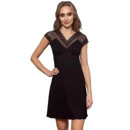 Nočná košeľa Margaret ELDAR - čierna - vyrobená z kvalitnej viskózy - krátke čipkované rukávy - čipkovaná aplikácia na vrchu Zloženie materiálu: 85% viskóza + 10% polyamid + 5% elastan