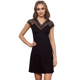 Nočná košeľa Margaret plus ELDAR - čierna - vyrobená z kvalitnej viskózy - krátke čipkované rukávy - čipkovaná aplikácia na vrchu Zloženie materiálu: 85% viskóza + 10% polyamid + 5% elastan