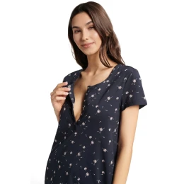 Dámská noční košile 40638 Blow Henderson - vyrobené z velmi kvalitní a příjemné bavlny - tmavě modrá barva - krátké rukávy - s potiskem - zapínání na knoflíky