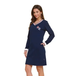 Dámská noční košile 4534 Doctor Nap - vyrobená z velmi kvalitní a příjemné bavlny - tmavě modrá barva s dlouhými rukávy - na přední straně zdobené potiskem - výstřih s ozdobným lemováním - certifikát OEKO-TEX Standard 100