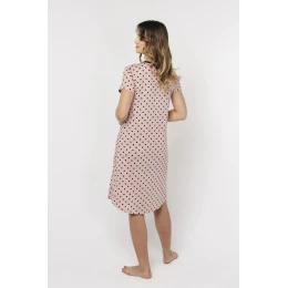 Noční košile Buscato ITALIAN FASHION - růžová barva - vyrobená z velmi kvalitní a příjemné bavlny - krátký rukáv - zapínání na patentky - s černými puntíky